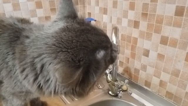 Жизнь кошек. Кот Жорик пьющий воду прямо из крана. Котик знает - из крана вкуснее!