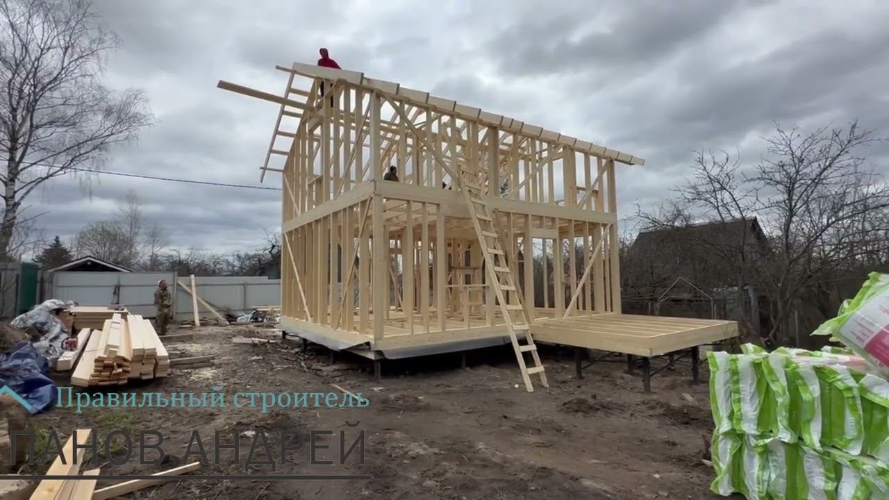 Строительство каркасного дома 7х8 м. Внешняя отделка фасадная плитка Деке Вагаси.