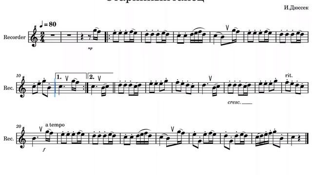 И.Дюссек «Старинный танец» аккомпанемент для блок флейты