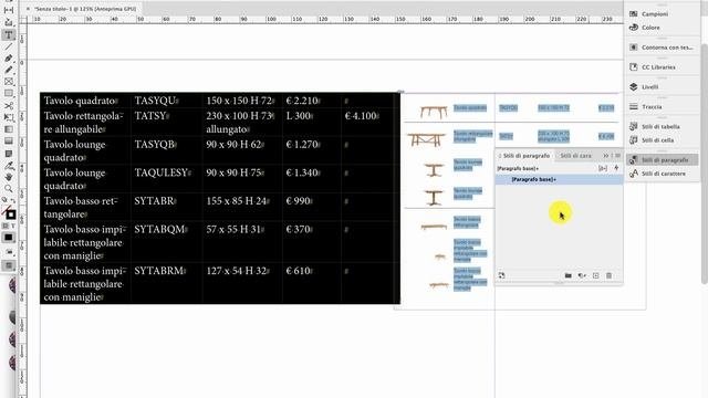 Indesign - Formattazione tabella, attribuzione di stili