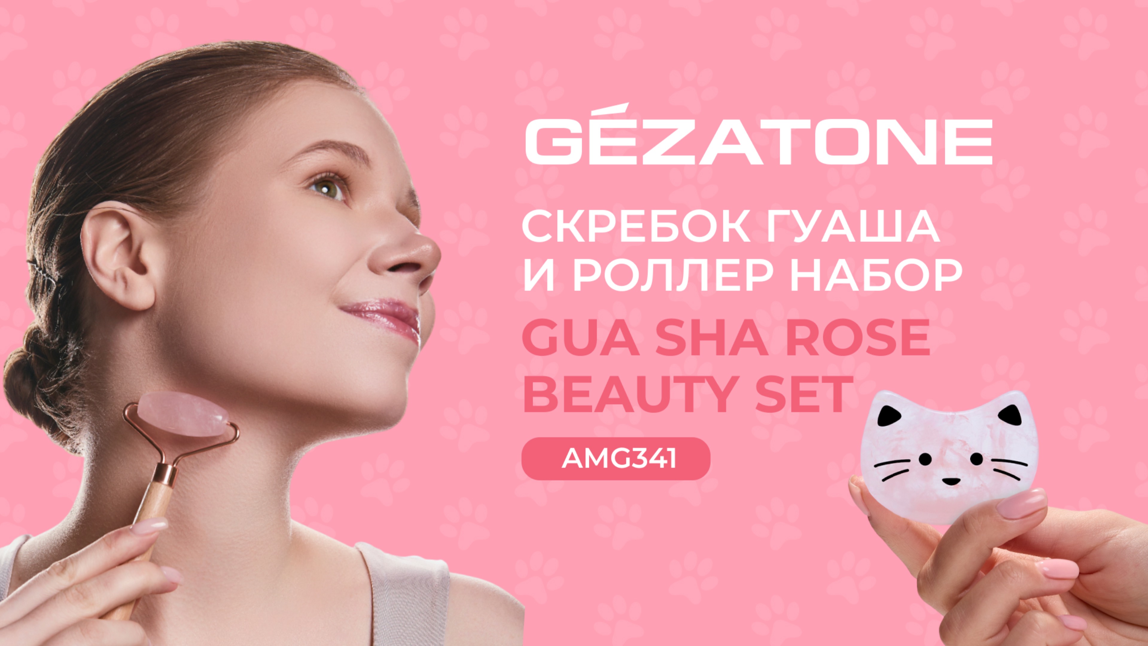 Скребок Гуаша и роллер – набор «Gua Sha Rose Beauty SetAMG341» CHEEKY GEMMA
