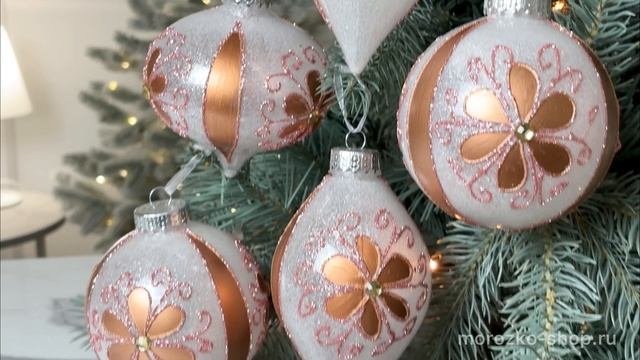 Набор ёлочных ПЭТ шаров и украшений ЦВЕТОЧНЫЙ МОТИВ, белый, 10 см, 6 шт., 1000948