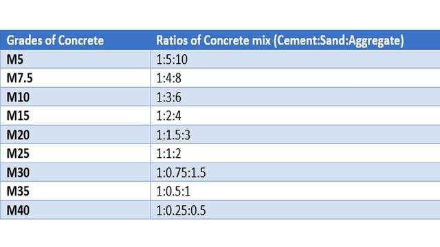 Concrete mix ratio - Various grades of concrete - Concrete mix design