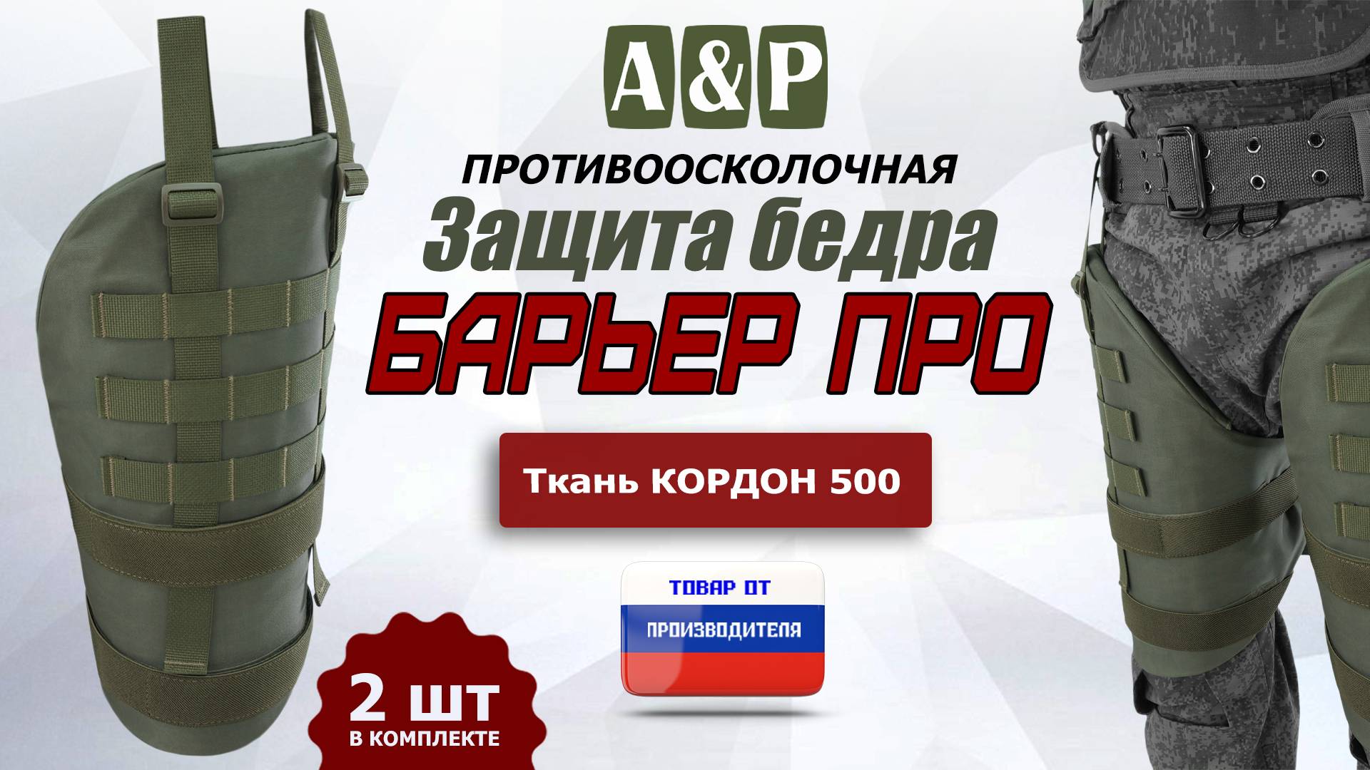 Заказать противоосколочную защиту бедра "Барьер ПРО", класс защиты Бр 1 или Бр 2, а также другие аксессуары можно на официальном сайте компании А&Р Групп: https://ap-group-llc.ru/ Возможность изготовления товаров по индивидуальным размерам и проектам. Гарантия на продукцию 1 год. Доставка осуществляется по всей России, а также в Казахстан и Беларусь. _______________________________________________________________________ Мы ВКонтакте: https://vk.com/apgroup Мы на Wildberries: https://www.wildberries.ru/seller/198927 Мы на Ozon: https://www.ozon.ru/brand/a-p-87358243/ Мы на Я.Маркете: https://market.yandex.ru/business--a-r-grupp-rossiiskii-proizvoditel-aksessuarov/864809