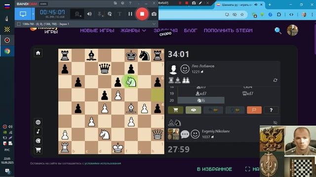Шахматы Пикабу-игры Н-Е-В 2025-09-18 Запись при игре Х+3