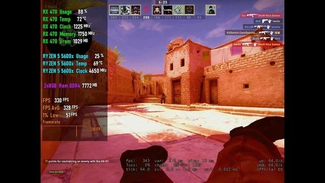 CS:GO : Rx 470 || Ryzen 5 5600x || 1024x768 || Low Graphics PC Specs: Processor: Ryzen 5 5600x 3.7GHz (Boost 4.6GHz) Graphics Card: Rx 470 4GB GDDR5 xfx Cooler : DeepCool Gammaxx 400 V2 Mainboard: Gigabyte B550M Aorus Elite RAM: 16GB 2x(8) 3600Mhz HDD: 1TB OS: Windows 10 ✖ Subscribe to me ✖ https://www.youtube.com/channel/UCoxme4oP81LzZ0p4pHRShdg?sub_confirmation=1 ✖ Thank You For Waching ✖ #Benchmark #Gameplay #rx470 #csgo