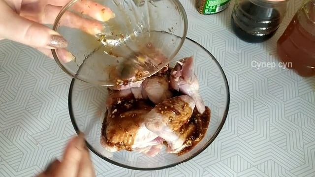 Возьмите куриные крылышки, окуните в соево-медовый соус и наслаждайтесь вкуснятиной!