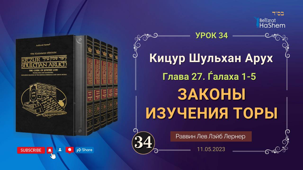 𝟑𝟒. Законы изучения Торы | Кицур Шульхан Арух 27/1-5 | Рабби Лев Лэйб Лернер