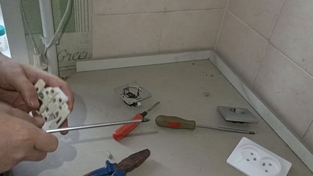 Распаковка розетки попытка раскрутить крепления под провода развалилась керамика