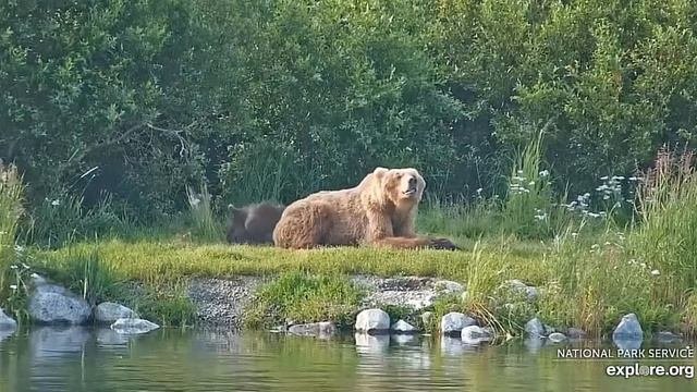 Видео записано с прямой трансляции с https://www.youtube.com/watch?v=nzzBwdxfpqo Kat's River View - Katmai National Park, Alaska 2023 powered by EXPLORE.org - Вид на реку Кэт - Национальный парк Катмай, Аляска EXPLORE.org Место, где река Брукс впадает в озеро Накнек в национальном парке Катмай на Аляске, является популярным местом для медведиц и их детенышей, которые учатся охотиться