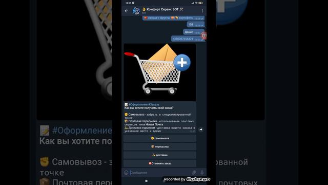 Оформление заказа через самовынос | БОТмагазин Фермерские продукты