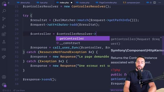 📧 INCRIVEZ VOUS A MA NEWSLETTER : http://eepurl.com/gZ0LEH ⭐ MA FORMATION DE 20H SUR LES BASES DE SYMFONY 5 AVEC 30% DE REDUCTION ICI : https://learn.web-develop.me?coupon=REDUC30 ⭐ MA FORMATION API PLATFORM ET REACT AVEC 30% DE REDUCTION ICI : https://learn.web-develop.me?coupon=REDUC30 ▶ ON RECREE SYMFONY A PARTIR DE RIEN ! Dans ce cinquième épisode, on découvre les Resolvers (ControllerResolver et ArgumentResolver) qui vont nous permettre de boooster considérablement notre micro framework 🔗 Le lien vers le tutoriel : https://symfony.com/doc/current/create_framework/index.html 〰〰〰〰〰〰〰〰〰〰〰〰〰〰〰〰〰〰〰〰〰 👍 BONUS 〰〰〰〰〰〰〰〰〰〰〰〰〰〰〰〰〰〰〰〰〰 🔗 La playlist de tous mes cours sur Symfony 4 : https://www.youtube.com/watch?v=UTusmVpwJXo&list=PLpUhHhXoxrjdQLodxlHFY09_9XzqdPBW8 〰〰〰〰〰〰〰〰〰〰〰〰〰〰〰〰〰〰〰〰〰 😺 RETROUVEZ MOI ICI LES BROS 〰〰〰〰〰〰〰〰〰〰〰〰〰〰〰〰〰〰〰〰〰 Twitter : https://twitter.com/LiiorC LinkedIn : https://www.linkedin.com/in/lior-chamla/ Facebook : https://www.facebook.com/groups/366592570424890/ Discord : https://discord.gg/HTxZKfS CodePen : https://codepen.io/liorchamla/ ☕ Si tu veux me soutenir, paye moi un café 😁💓 : https://www.buymeacoffee.com/LiorChamla