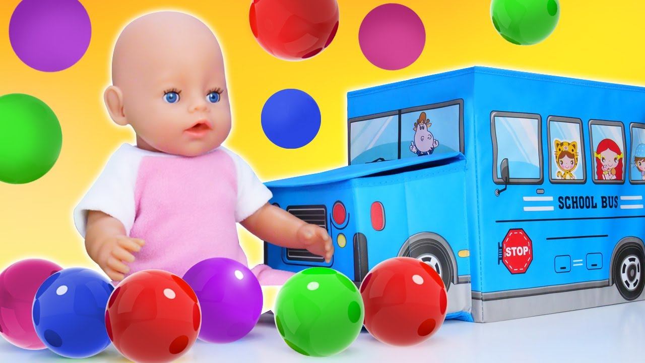 Весёлые игры – Кукла БЕБИ БОН и Автобус с цветными шариками! Видео игры Как Мама для пупса Baby Born