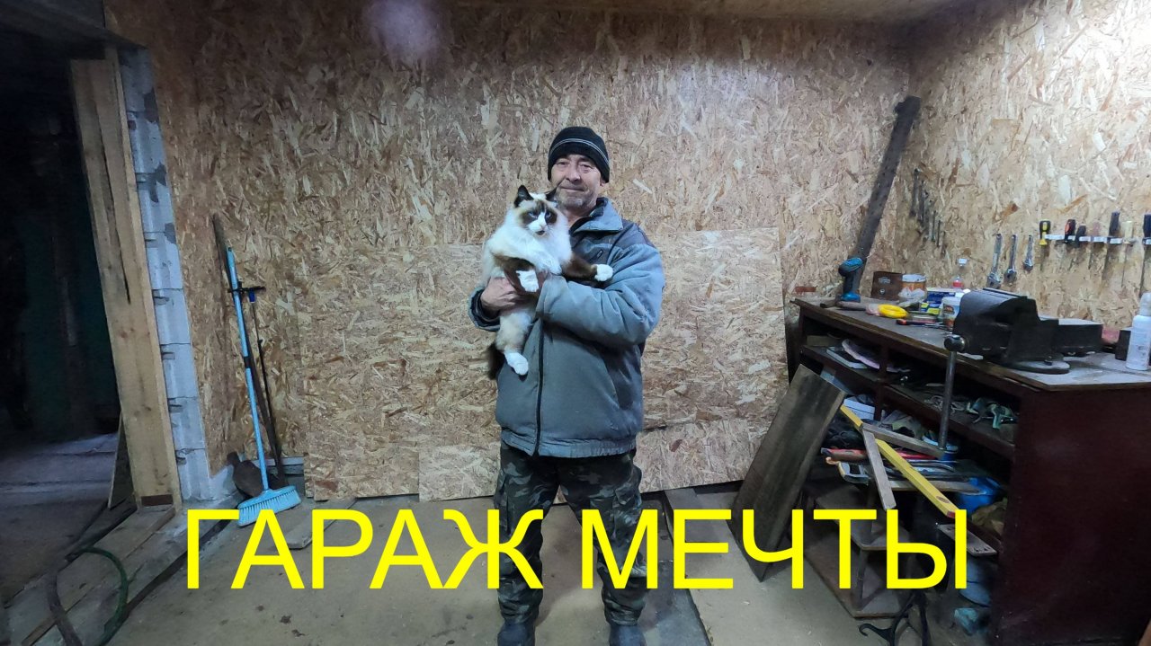 Всем привет!! Один день в гараже . Задумка была сделать стеллажи из металлических уголков , но передумал так ка ещё не всё готово . Было принято решение , намутить временные стеллажи из деревянных щитов .