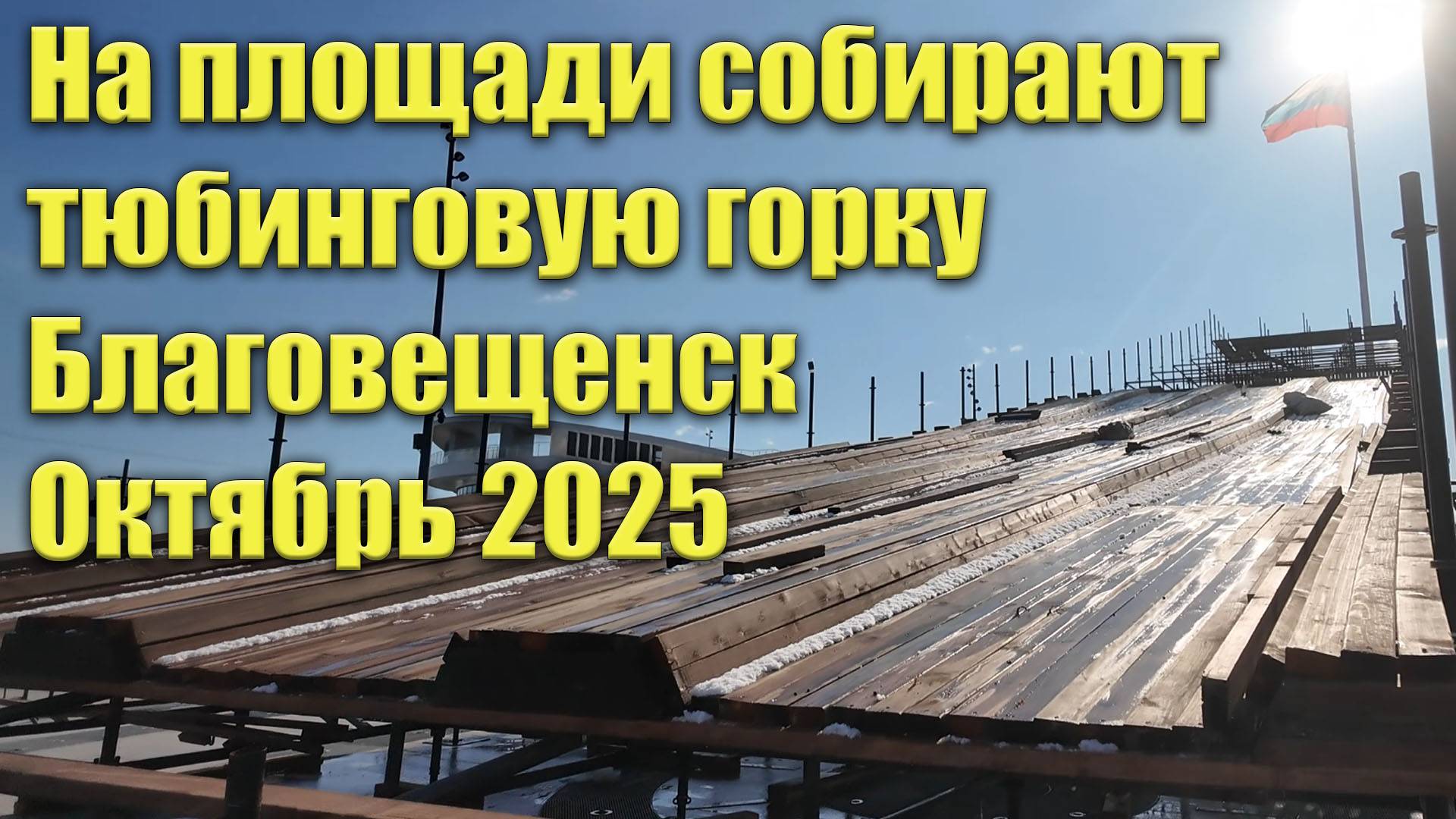 Тюбинговая горка на площади Благовещенска. Октябрь 2025. Собирают горку