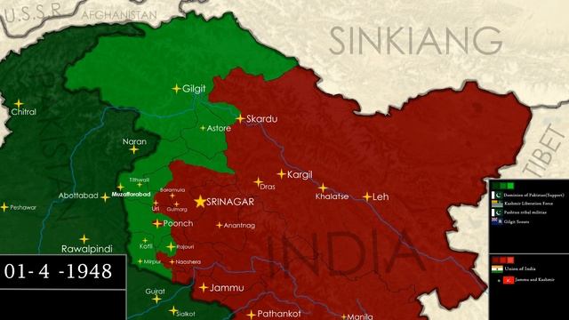 This video will map out every day the first Kashmir war or the Indo-Pakistani war of 1947-1948.Accuracy is not 100% neither was control in the Himalayas and Hindu Kush clear cut, keep in mind. Music Used 1.Dystopia-Perkiilstofte,https://soundcloud.com/perkiilstofte,Music promoted by BreakingCopyright: https://bit.ly/dystopia-song