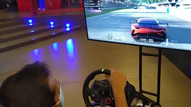 Playing GT Sport at Sardegna with Steering wheel experience at Majestic City Mall, Sri Lanka