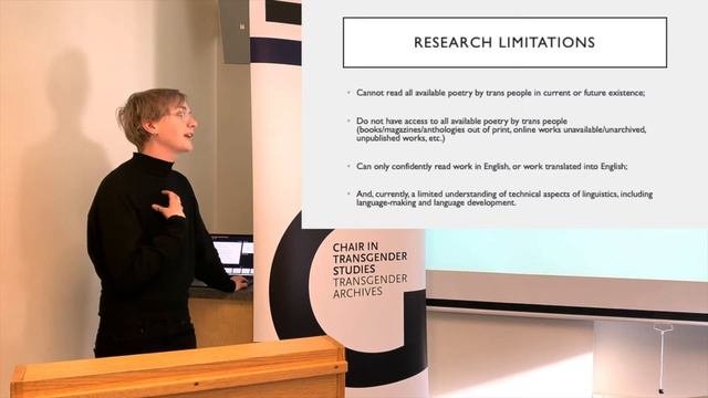 CHAIR IN TRANSGENDER STUDIES: https://www.uvic.ca/research/transchair/index.php TRANSGENDER ARCHIVES: https://www.uvic.ca/transgenderarchives/ DONATE: https://extrweb.uvic.ca/donate-online/transchair Smokii Sumac - You are Enough: https://www.youtube.com/watch?v=hP0YL9t2L1E&t=24s Terrence Abrahams MA candidate - Literatures of Modernity - Ryerson University, Chair in Transgender Studies Visiting Fellow “THE EFFORT, EFFECT, AND AFFECT OF TRANS POETICS” Tues., Nov. 26th, 2019 12:00 PM - 1:30 PM Cornett A319 (Bring your lunch) Drawing from Terrence’s MA thesis, this presentation will aim to resist the urge to define transgender poetics. Trans poetics are, simply put, poetics written by trans people, but within such a genre of writing exists a myriad of forms, styles, themes, subject matter, and uses of language that are, arguably, unique to trans poetics. This presentation will honour and highlight the work of trans writers, past and present, in shaping trans poetry. It will also look to the personal poetics of many of the selected authors by addressing interviews, personal essays, and other ephemera in order to have a better understanding of how transgender authors express their poetics, as well as how they read and understand the poetics of others. As a transgender individual who is also a student, a burgeoning educator, and a poet himself, Terrence’s research and subsequent writing comes from a place of consideration, of care, and of a kind of necessity. ABOUT TERRENCE ABRAHAMS Terrence Abrahams is a MA candidate in the Literatures of Modernity program at Ryerson University. A University of Toronto alumnus and poet, Terrence is currently in the process of completing his major research paper. His research focuses on exploring, examining, and learning more about the distinct forms of poetry and poetics utilized by transgender writers across North America, with a particular interest in writers based in Canada. His aim is to contribute to the ongoing and necessary work of ensuring the creative efforts and contributions of trans writers are allowed space in academic study.