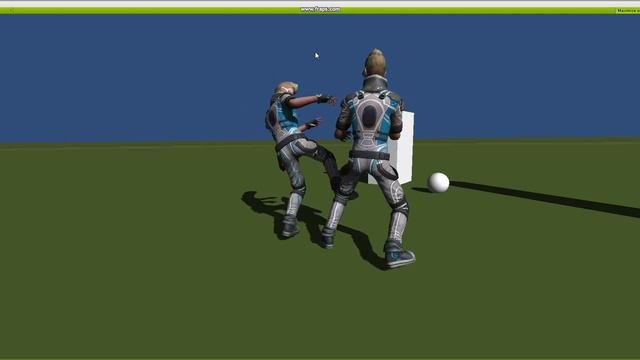 Fighting with ragdolls can be both cool and realistic. This was done using the standard AnimFollow script and a custom ragdoll control.