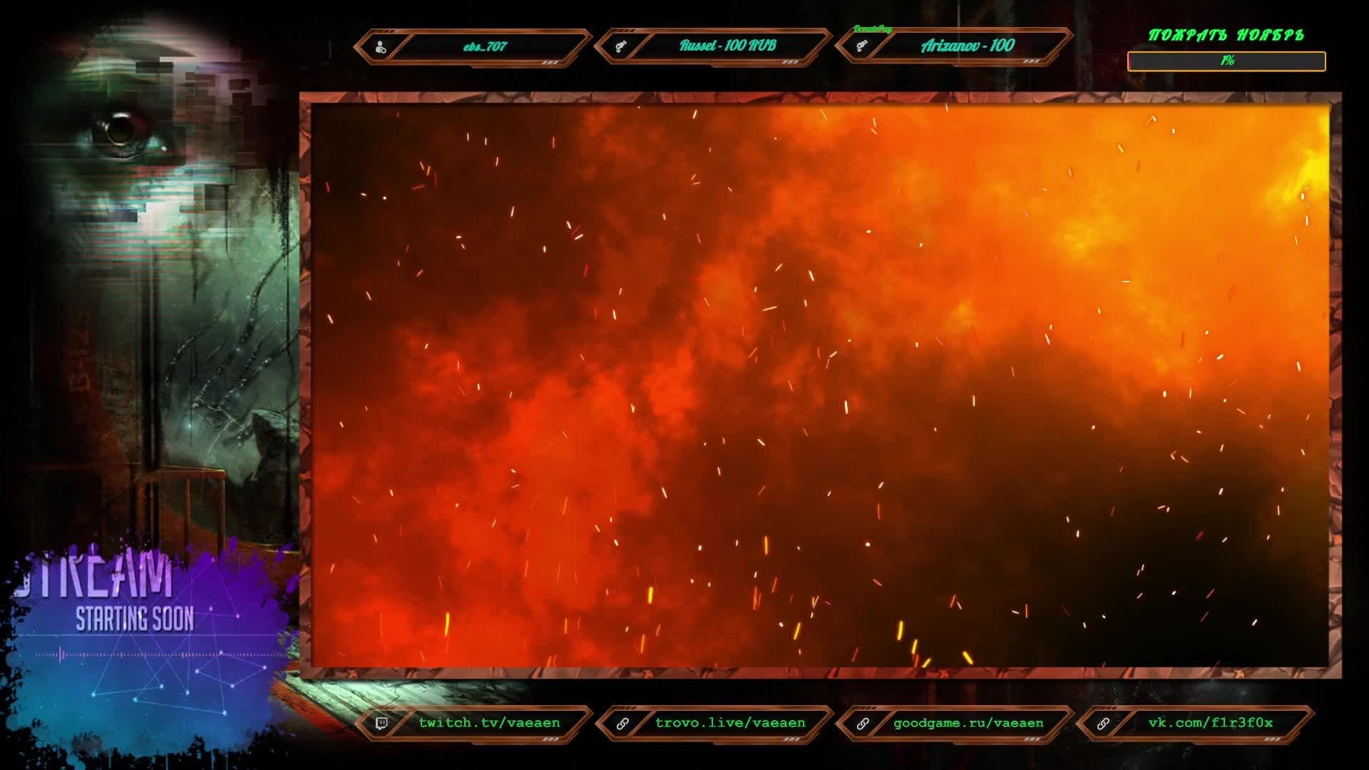 Если хотите поддержать меня как стримера - нажмите по данной ссылке https://www.donationalerts.com/r/f1r3f0x Donate for USD, EU all world - https://new.donatepay.ru/@vaeaen Во время стрима ваше сообщение появится на экране, и будет сопровождаться голосовым диктором. Поддержка на Boosty https://boosty.to/vaeaen Поддержка без комиссии: Сбер: 2202 2010 0629 1039 Тинькофф: 2200 7008 4677 0625 Основные каналы: Twitch: https://www.twitch.tv/vaeaen Trovo: https://trovo.live/Vaeaen GoodGame: https://goodgame.ru/channel/Vaeaen/ VKplay: https://vkplay.live/vaeaen Wasd: https://wasd.tv/vaeaen YouTube: https://www.youtube.com/channel/UCsl3CyRcImUYtWiCgEdvmjQ