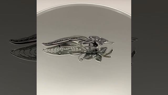 Ажурная серебряная брошь цветок с пером в оксидировании Б13014936
