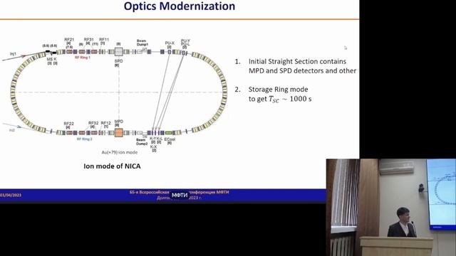 Сергей Колокольчиков 1. Магнитооптическая структура отводных каналов ByPass в синхротроне NICA для поиска ЭДМ в режиме накопительного кольца Эксперимент по поиску EDM в ускорительном комплексе NICA предполагает ускорение дейтронов до энергии порядка 240 МэВ. Для обеспечения режима квази-замороженного спина необходимы E+B элементы, именуемые Wien Filters. Такие элементы могут быть расположены на прямом участке и компенсируют поворот спина от поворотной арки. Для этого предлагается установка дополнительных отводных каналов ByPass, чтобы использовать NICA в режиме накопительного кольца. 2. Рассмотрение адаптированной структуры Nuclotron для поиска EDM Рассматривается возможность модернизации магнитооптической структуры Нуклотрона в ускорительном комплексе NICA ОИЯИ г. Дубна в связи с ревизией всех функций отдельных частей. В этой работе мы рассмотрели магнитооптическую структуру Нуклотрона адаптированную для поиска электрического дипольного момента дейтрона (dEDM).