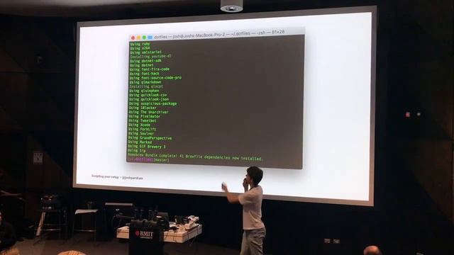 /dev/world is a conference focused on iOS and Mac development – https://devworld.com.au, and this year I gave a lightning talk on various aspects of my Mac setup script. The slides are available at this GitHub repository: https://github.com/josh-/scripting-your-mac-setup-talk
