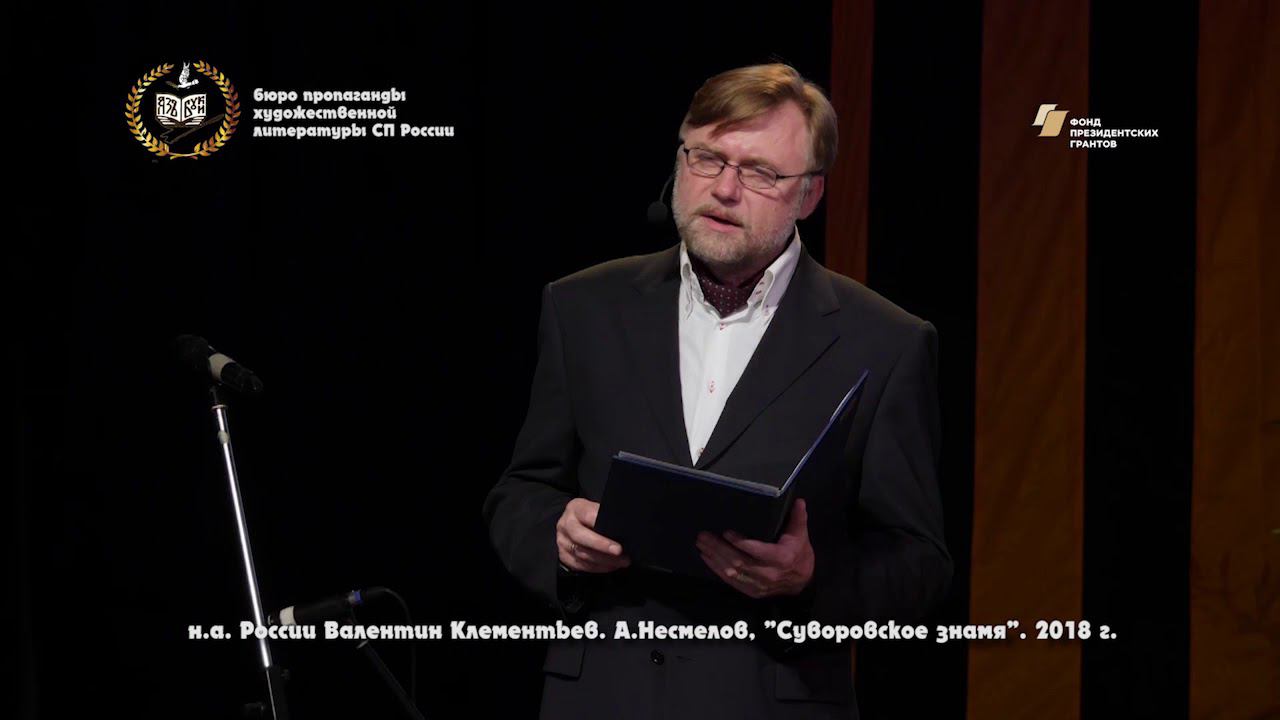народный артист России Валентин Клементьев читает стихотворение Арсения Несмелова Суворовское знамя Отступать! — и замолчали пушки, Барабанщик — пулемёт умолк. За черту́ пылавшей деревушки Отступил Фанагори́йский полк. В это утро перебило лучших Офицеров. Командир сражён. И совсем молоденький поручик Наш четвёртый принял батальон. А при батальоне было знамя, И молил поручик в грозный час, Чтобы Небо сжалилось над нами, Чтобы Бог святыню нашу спас. Но уж слева дрогнули и справа, — Враг наваливался, как медведь, И защите знамени со славой Оставалось только умереть. И тогда, — клянусь, немало взоров Тот навек запечатлело миг! — Сам генералиссимус Суворов У седого знамени возник. Был он худ, был с пудренной косицей, Со звездою был его мундир. Крикнул он: «За мной, фанагори́йцы! С Богом, батальонный командир!» И обжёг приказ его, как лава, Все́ сердца́: святая тень зовёт! Мчались слева, подбегали справа, Чтоб, столкнувшись, броситься вперёд! Ярости удара штыкового Враг не снёс; мы ураганно шли, Только командира молодого Мёртвым мы в деревню принесли… И у гроба — это вспомнит каждый Летописец жизни полковой, — Сам Суворов плакал: ночью дважды Часовые видели его. в рамках проекта "Панорама русской культуры. Классика и современность" при поддержке Фонда президентских грантов.