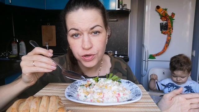 МУКБАНГ СУП ЛАПША, КРАБОВЫЙ САЛАТ, СЛОЙКА/МОЁ ЛИЦО НЕПАХАНОЕ ПОЛЕ ?