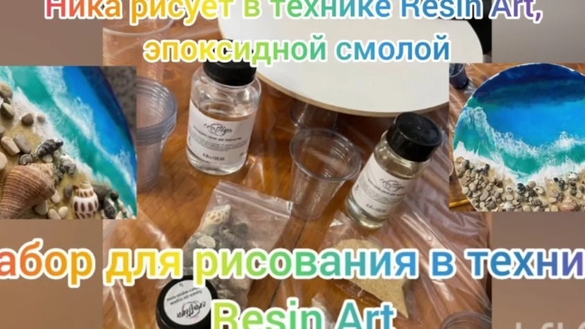 Ника рисует картину в технике Resin Art, эпоксидной смолой.