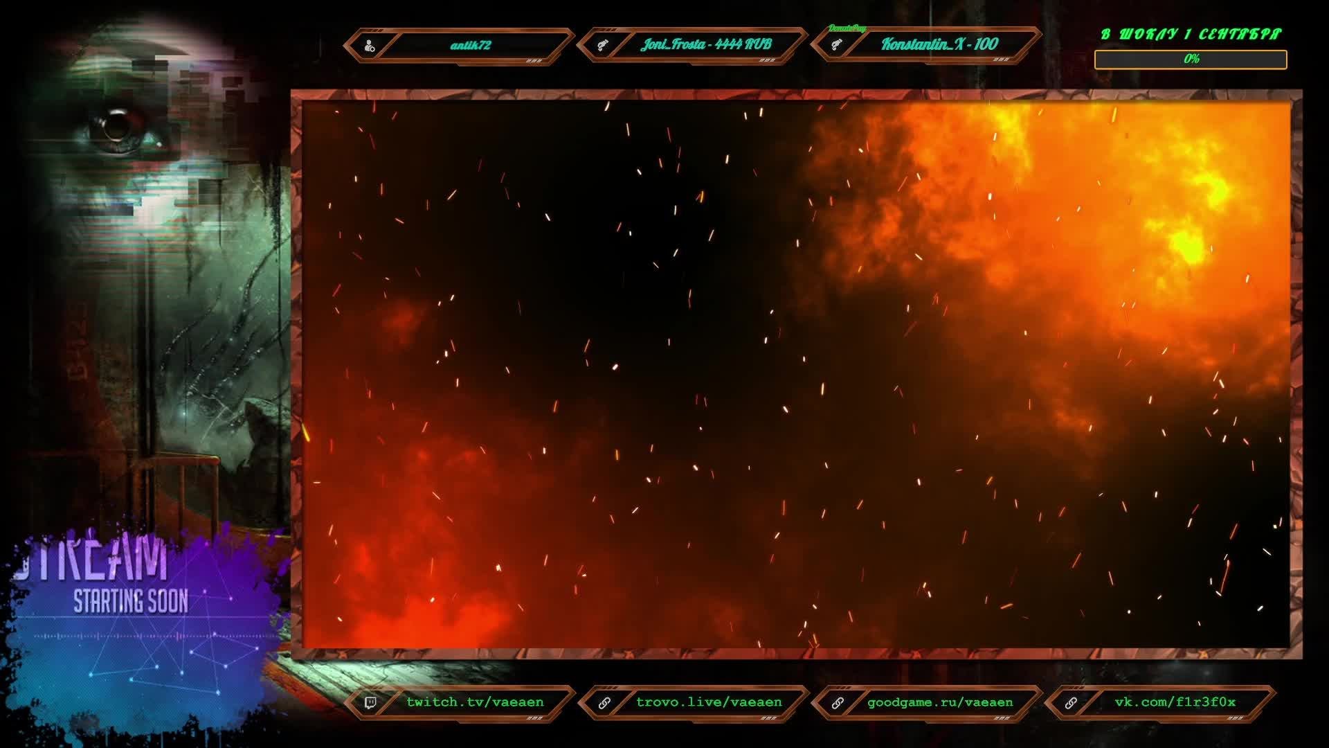 Если хотите поддержать меня как стримера - нажмите по данной ссылке https://www.donationalerts.com/r/f1r3f0x Donate for USD, EU all world - https://new.donatepay.ru/@vaeaen Во время стрима ваше сообщение появится на экране, и будет сопровождаться голосовым диктором. Поддержка на Boosty https://boosty.to/vaeaen Поддержка без комиссии: Сбер: 2202 2010 0629 1039 Тинькофф: 2200 7008 4677 0625 Основные каналы: Twitch: https://www.twitch.tv/vaeaen Trovo: https://trovo.live/Vaeaen GoodGame: https://goodgame.ru/channel/Vaeaen/ VKplay: https://vkplay.live/vaeaen Wasd: https://wasd.tv/vaeaen YouTube: https://www.youtube.com/channel/UCsl3CyRcImUYtWiCgEdvmjQ