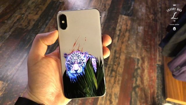 iPhone X со светящимся леопардом