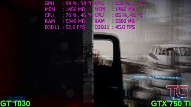 GT 1030 vs GTX 750 Ti in Battlefield 3 Single\MP (Pentium G4560)