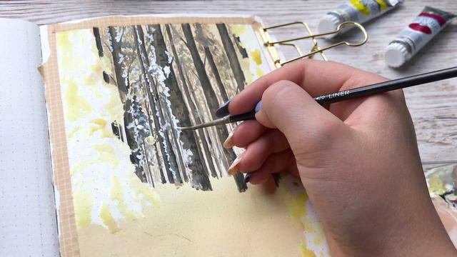 Snowy Forest Painting With Gouache | Step by Step Winter Landscape Tutorial