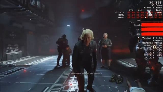 Wolfenstein II: The New Colossus Test on budget gaming laptop Acer Aspire E 14 E5-475G-341s Preset : Low FPS : 27 - 45 CPU : Intel Core i3 6006u 2Ghz GPU : Nvidia Geforce 940MX GDDR5 2GB RAM : 8GB + 2GB DDR4 Kingston Recorded using bandicam FPS is little slower because of recording