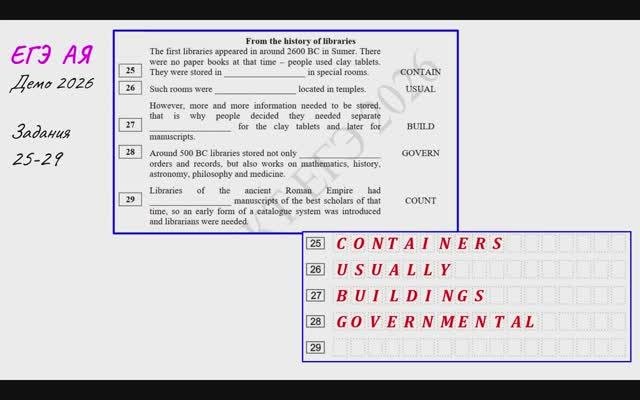 ЕГЭ Английский язык ДЕМО 2026 Задания 25-28 From the history of libraries
