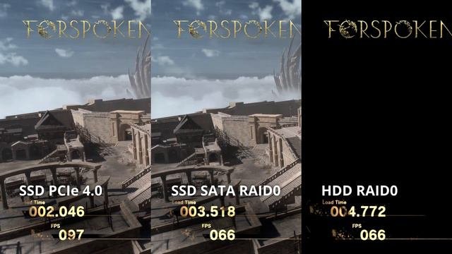 DirectStorage load times comparison test in Forspoken - HDD vs SATA SSD vs NVMe SSD