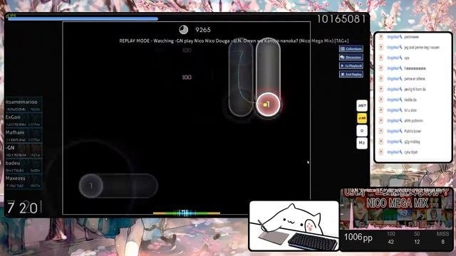 Osu stats Total pp: Highest pp play: Time played: Played since: Setup Monitor: asus rog strix XG258Q (240hz), msi g27c2 (144hz) Keyboard: asus rog claymore CMXred Tablet: wacom intuos medium Pen: intuos, standard nibs Mouse (do not use this to osu): asus rog gladius 2 Headset: astro a40tr, Turtle Beach elite pro tac mixer Graphic card: GTX 1060 Prosessor: intel core i5 RAM: 8gb Brain: 141iq, ca 18 years of stored memory