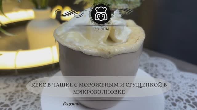 Кекс в чашке с мороженым и сгущенкой в микроволновке
