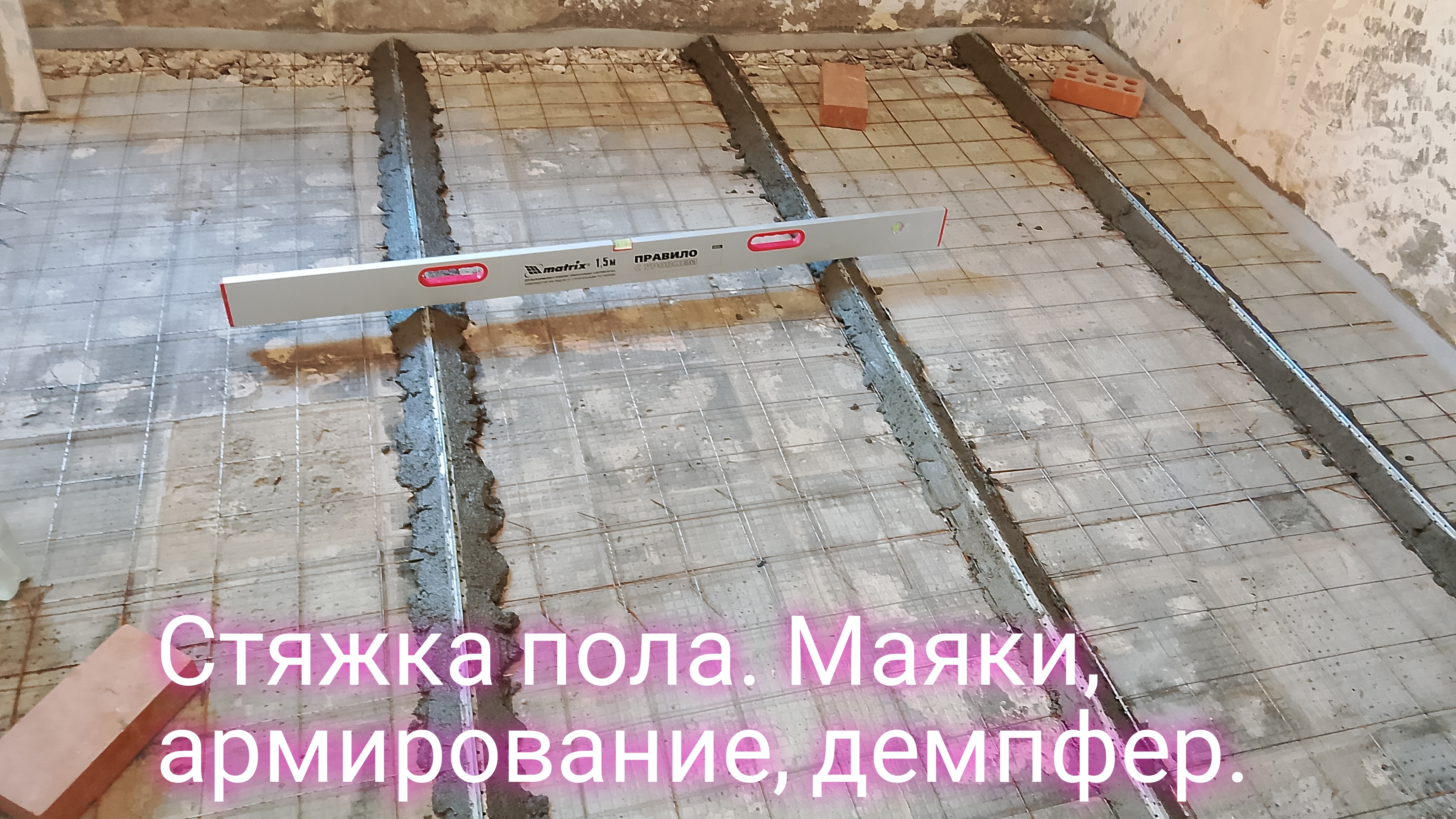 Стяжка пола.Маяки,армирование,демпфер.