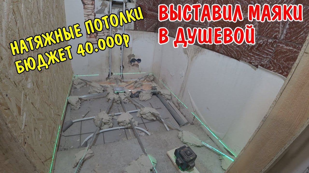 БУДЕМ НАТЯГИВАТЬ НАТЯЖНОЙ ПОТОЛОК / ВЫСТАВИЛ МАЯКИ В ДУШЕВОЙ / КУПИЛ ВАГОНКУ И ДОСКИ / ЗАТОПИЛ ПЕЧКУ