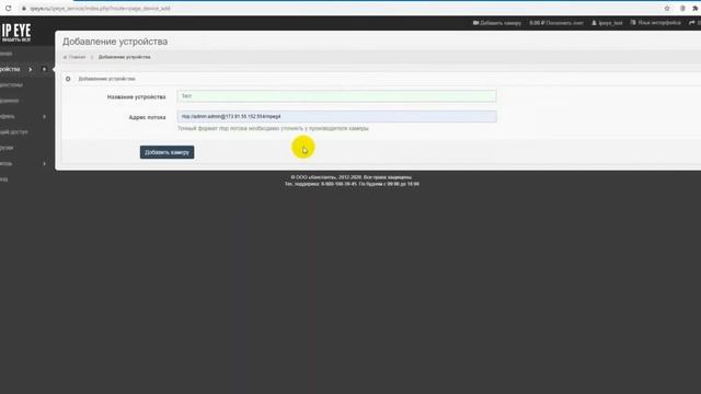 Добавление камеры на сервис IPEYE