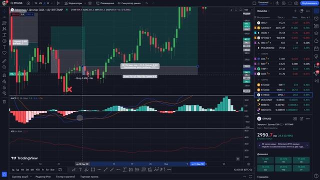 https://vk.cc/cuzrLX - изучить публикацию "Задания за деньги в интернете - мгновенная оплата за простые поручения" на интеpнeт сайте ? Присоединяйтесь к нашему Telegram-каналу! ? ? Узнавайте первыми о новых видео, эксклюзивных материалах и событиях на финансовых рынках: ? Поддержите нас донатом: ? Ваша поддержка помогает нам создавать качественный контент! ? Присоединяйтесь к чату по интересам: ? В чате ProTraderHub мы делимся опытом и обсуждаем мировые финансовые рынки: ? Следите за нашими торговыми идеями на TradingView! ? ? ? Спасибо, что смотрите наши видео! Не забывайте ставить лайк и подписываться на канал. * Оптимизация портфеля и использование ATR: Для данной стратегии необходимо использовать 2 индикатора: 1) MACD 2) WMA 22 ( период средней можно менять в зависимости от стиля вашей торговли, рекомендую проверить эффективность 17,20 и 50 wma на дневном графике) Параметры для открытия сделки в ЛОНГ: 1. Пересечение линий MACD в бычьем направлении (синяя линия пересекает красную снизу вверх). 2. Пересечение линий должно произойти ниже 0 уровня по MACD, в ином случае - не открываем сделку. 3. Свеча должна быть над WMA 22. Параметры для открытия сделки в ШОРТ: 1. Пересечение линий MACD в медвежьем направлении (синяя линия пересекает красную сверх вниз). 2. Пересечение линий должно произойти выше 0 уровня по MACD, в ином случае - не открываем сделку. 3. Свеча должна быть под WMA 22. Первоначально открываем сделку с соотношение риск/прибыль 1 к 1. Половину позиции фиксируем на отметке 1 (при соотношении риск/прибыль 1 к 1), далее переносим стоп в зону покупки/продажи, т.е. в без убыток и ждём отработки сделки 1 к 3. Эффективность стратегии составляет 68,75%. При общем количестве сделок 64, прибыльных сделок - 44, сделок 1 к 3 - 20 (31,25%), убыточных сделок - 20 (31,25%). При использовании данной стратегии, часто теряем импульсные движения. После 1 -го тейка стоп можно переносить не в без убыток, а ... : 1) на значение ATR (лично для меня - наиболее предпочтительный вариант) 2) за предыдущий минимум/максимум 3) на 2 значения ATR (рисково) 4) на половину значения ATR от точки входа выход из позиции можно осуществлять с помощью SAR (при смене направления точек) или с помощью того же ATR (тейк - на значение ATR свечи входа), однако, изначально планируется забирать соотношение риск/прибыль 1 к 3. *Вся информация, представленная на данном канале, носит исключительно информационно-аналитический характер и НЕ ЯВЛЯЕТСЯ индивидуальной рекомендацией к покупке / продаже какого-либо актива. #заработок #бизнес #работа #деньги #заработокснуля #заработоквинтернете #заработоконлайн