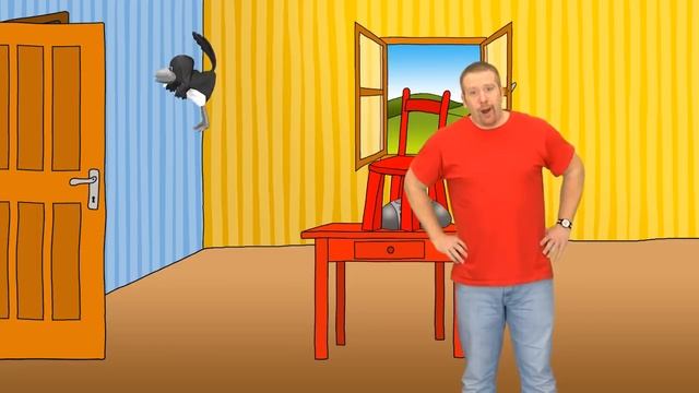 At home. Radio, table, chair and carpet English for Children English for Kids