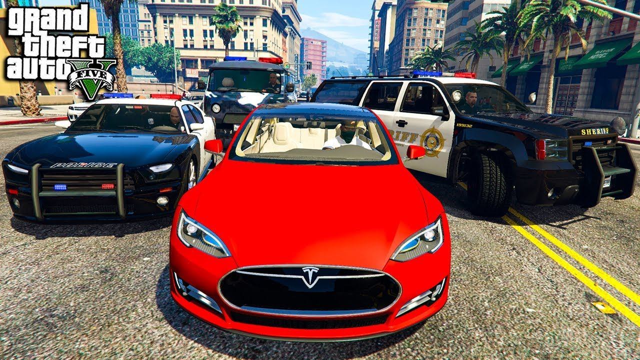 ГАНГСТЕР УГНАЛ ТЕСЛУ С АВТОПИЛОТОМ УНИЗИЛ КОПОВ GTA 5 РЕАЛЬНАЯ ЖИЗНЬ ГТА 5 МОДЫ