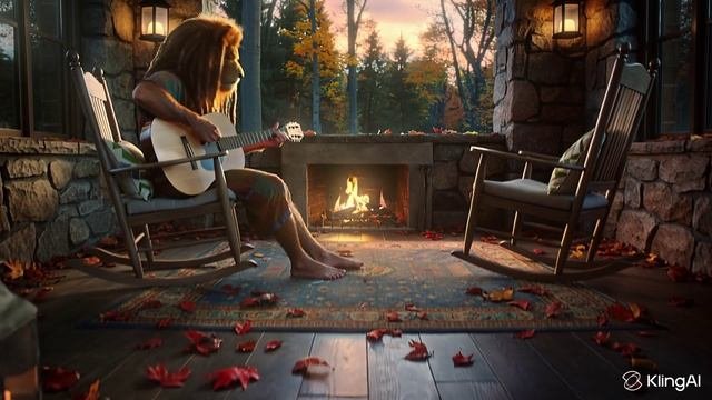 Камин. Игра на гитаре