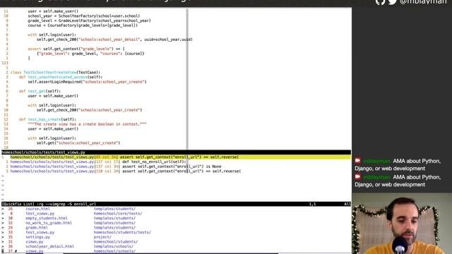 Note: The video for this stream has a poor frame rate. I had low bandwidth during the stream and didn't notice until after it was over. Sorry for the lesser experience this provides. In this episode, I decided to redesign a portion of the application flow. I wasn't pleased with how users would enroll students for their grades so I refactored the school year page into a flow that worked better. Full show notes are at https://www.mattlayman.com/building-saas/84 My Gear * Audio-Technica ATR2100x-USB Microphone (my podcast/streaming recording mic): https://amzn.to/3iKfRk5 * Kinesis Advantage 2 (my preferred keyboard): https://amzn.to/3phTrJz * ROVKING Earbuds (simple and solid earbuds): https://amzn.to/3oaFCvj * UPLIFT Desk (my standing desk): https://amzn.to/2YaH8CO * Dot Matrix Notebook (my activity journal): https://amzn.to/3ohtzMs Learn more about the software developer gear I use at https://www.mattlayman.com/uses/. I only recommend gear that I love. The gear links above are affiliate links that will support me (at no extra cost to you!) if you find something you like and want to buy. You can support me at https://www.patreon.com/mblayman. Money from Patreon helps cover hosting for stream websites, podcasting, and production costs for my Django work. Want to learn more? You can check out my most popular articles at https://www.mattlayman.com/most-popular/. I also have a newsletter where I share articles about #Python, #Django, #SaaS, and other software topics. Join in at https://www.mattlayman.com/newsletter/. Watch live at https://www.twitch.tv/mblayman
