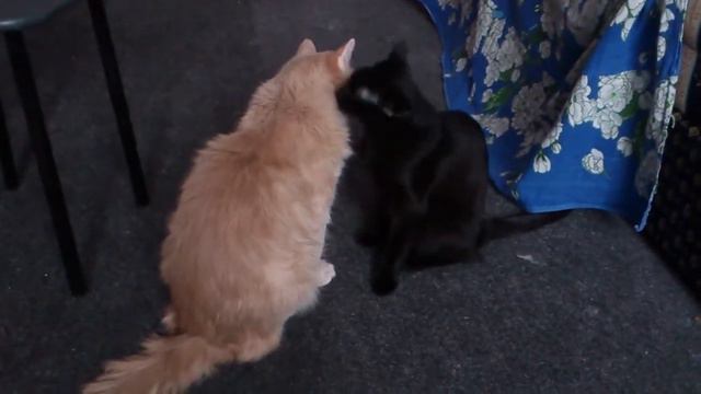 Кошки вылизывают друг друга