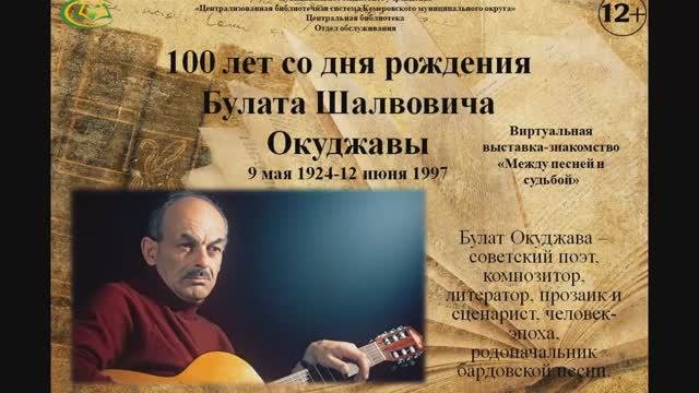 Виртуальная выставка-знакомство «Между песней и судьбой» к 100-летию со дня рождения Булата Шалвовича Окуджавы. Выставка посвящена творчеству основоположника направления авторской песни Б. Окуджаве. Человек ― эпоха, замечательный поэт и прозаик, в первую очередь стал известен как создатель жанра авторской песни, и его гитара была созвучна чаяниям нескольких поколений. #ЦБКемеровскогомуниципального округа #БулатОкуджава #виртуальнаявыставка #авторскаяпесня