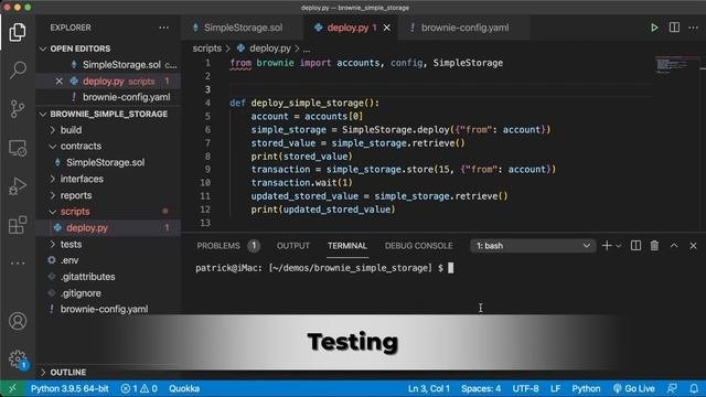 In this video, follow along step-by-step to build a simple storage project using Brownie. Learn how to use the popular smart contract development framework Brownie—adopted by blockchain projects such as Yearn Finance, Curve Finance, and Badger Finance—to make deploying, testing, and automating your smart contract substantially easier. Github link: https://github.com/smartcontractkit/full-blockchain-solidity-course-py Helpful resources: - Github repo for this episode: https://github.com/smartcontractkit/full-blockchain-solidity-course-p #lesson-4-web3py-simple-storage - Github repo for the whole course: https://github.com/smartcontractkit/full-blockchain-solidity-course-py - The full Solidity, Blockchain, and Smart Contract course: https://youtu.be/M576WGiDBdQ Explore the full suite of Chainlink decentralized oracle solutions, from Chainlink Data Feeds and Chainlink VRF to Chainlink Automation (formerly known as Chainlink Keepers): https://chain.link/developer-resources Chainlink is the industry-standard Web3 services platform that has enabled trillions of dollars in transaction volume across DeFi, insurance, gaming, NFTs, and other major industries. As the leading decentralized oracle network, Chainlink enables developers to build feature-rich Web3 applications with seamless access to real-world data and off-chain computation across any blockchain and provides global enterprises with a universal gateway to all blockchains. Learn more about Chainlink: Website: https://chain.link Docs: https://docs.chain.link Twitter: https://twitter.com/chainlink #Chainlink #Brownie #smartcontracts